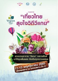 การท่องเที่ยวแห่งประเทศไทย (ททท.) ร่วมกับ สถาบันอาหาร ชวนเปิดประสบการณ์ลิ้มรสวิถีวีแกนไทย คัดสรร เมนูเด็ด หลากสไตล์ จากร้านที่ได้รับการการันตี ร้านอาหาร “วีแกนติดดาว” มาจัดแสดงเพื่อสร้างประสบการณ์และเชิญชวนทุกท่านให้แวะไป ช้อป ชิม อย่างจุใจ มากกว่า 40 ร้านดัง พร้อมทั้งจัดแสดง 10 เมนูต้นแบบอาหารวีแกนที่สามารถทำได้ง่ายที่บ้าน และธุรกิจที่เกี่ยวข้องกับวัตถุดิบกลุ่ม Plant based Protein
