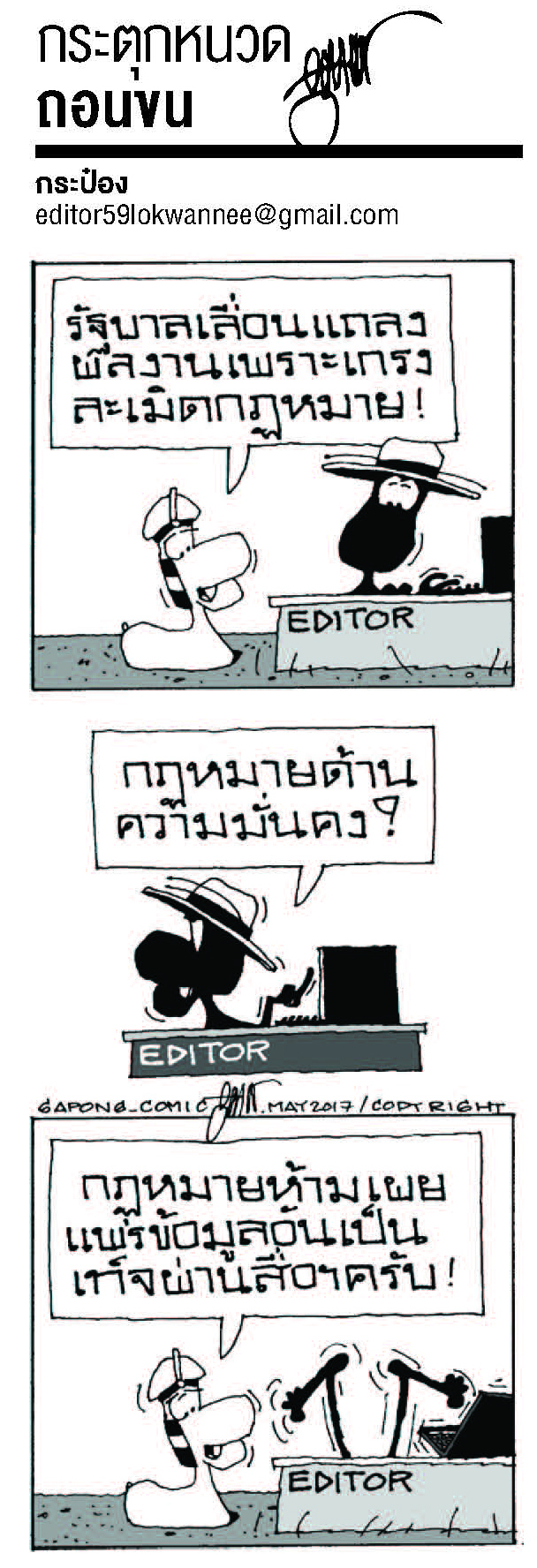 การ์ตูนกระตุกหนวดถอนขน จากหนังสือพิมพ์โลกวันนี้รายวัน ฉบับที่ 4586 วันพฤหัสบดีที่ 25 พฤษภาคม พ.ศ. 2560