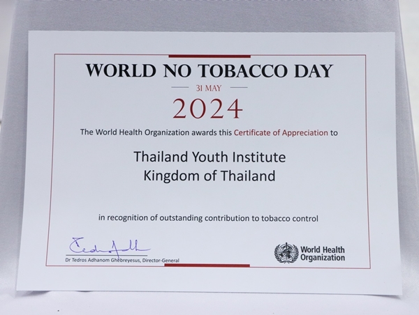 สถาบันยุวทัศน์ ฯ คว้ารางวัล “วันงดสูบบุหรี่โลก ปี 2567” จาก WHO