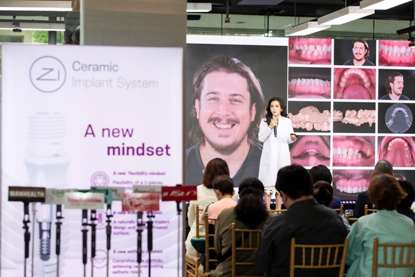 นอกจากนี้ นางสาว จิตรา สังฆกิจ Country Manager บริษัท Straumann Group ประเทศไทย ยังได้ให้ข้อมูลเกี่ยวกับบริษัท Straumann Group และรากฟันเทียมเซรามิกในงาน โดย Straumann Group เป็นบริษัทชั้นนำจากประเทศสวิตเซอร์แลนด์ ก่อตั้งขึ้นในปี พ.ศ. 2497 (ค.ศ. 1954) มีสำนักงานใหญ่ตั้งอยู่ที่เมืองบาเซิล ประเทศสวิตเซอร์แลนด์ บริษัทมีความชำนาญการการในการวิจัย พัฒนา และผลิตอุปกรณ์ทางทันตกรรมในหลากหลายมิติ ไม่ว่าจะเป็นรากฟันเทียม เครื่องมือจัดฟันใส วัสดุชีวภาพ และเทคโนโลยีดิจิทัล เพื่อการดูแลสุขภาพช่องปากอย่างมีประสิทธิภาพ ปัจจุบัน ผลิตภัณฑ์ของ Straumann Group มีวางจำหน่ายในกว่า 100 ประเทศทั่วโลก โดยยึดมั่นในเทคโนโลยี ความน่าเชื่อถือ และมาตรฐานการดูแลผู้รับบริการระดับสากล