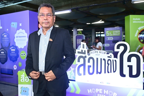 ด้าน นางเข็มพร วิรุณราพันธ์ ผู้จัดการมูลนิธิส่งเสริมสื่อเด็กและเยาวชน(สสย.) กล่าวว่า สัปดาห์เยาวชนเท่าทันสื่อ ถูกจัดขึ้นในเดือน ต.ค. ของทุกปี โดยในปี 2568 สำหรับการจัดนิทรรศการในครั้งนี้ ทาง สสย.มองว่า เด็กและเยาวชนเป็นพลังที่สำคัญถ้าส่งเสริมให้เขารู้สึกว่ามีความสามารถ พลัง ศักยภาพและมีส่วนร่วม และเปิดพื้นที่ให้เขาได้แสดงความคิดสร้างสรรค์ หมือนงานนิทรรศการครั้งนี้ HOPE HOP FEST ที่เราอยากจะสร้างความตระหนักในสังคมว่า อยากมีพื้นที่สร้างสรรค์ที่เปิดโอกาสให้เด็กได้สร้างสื่อในเนื้อหาสาระที่เขาได้ออกแบบ คิดเองและมีส่วนที่สร้างสรรค์สังคมให้ดีขึ้น ในปีนี้เราเน้นเรื่องประเด็นสันติภาพ ซึ่งเป็นปัญหาใหญ่ของสังคมและโลกด้วย เพราะว่าสันติภาพอาจจะไม่ใช่แค่ความขัดแย้งระหว่างประเทศ หรือสงคราม แต่มันคือสินติภาพที่อยู่ในชีวิตและวิถีประจำวัน ซึ่งเด็กๆสามารถเชื่อมโยงได้ถึงเรื่องราวความสัมพันธ์ของเพื่อน ความสัมพันธ์ในครอบครัวหรือ ความสัมพันธ์กับสิ่งแวดล้อมต่างๆ หรือการอยู่ร่วมกันในสังคมที่หลากหลายที่เป็นพหุวัฒนธรรม แม้เรื่องความรุนแรงที่อยู่ในสื่อเราก็ต้องการสันติภาพเช่นกัน