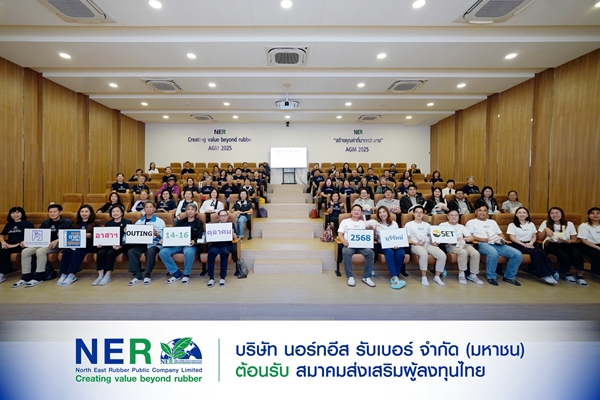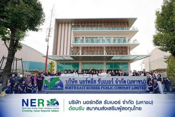 เมื่อวันที่14 ตุลาคม 2568 นายชูวิทย์ จึงธนสมบูรณ์ ประธานเจ้าหน้าที่บริหาร บริษัท นอร์ทอีส รับเบอร์ จำกัด (มหาชน) หรือ NER ผู้ดำเนินธุรกิจผลิตและจำหน่าย ยางแผ่นรมควัน ยางแท่ง ยางผสม และสินค้าปลายน้ำแผ่นยางพาราปูพื้นคุณภาพสูง เพื่อจำหน่ายไปยังผู้ผลิตในอุตสาหกรรมยานยนต์ กลุ่มผู้ค้าคนกลาง ทั้งในประเทศและต่างประเทศ ให้การต้อนรับคณะนักลงทุนกว่า 60 คน จาก “สมาคมส่งเสริมผู้ลงทุนไทย” (Thai Investors Association) นำโดย นายยิ่งยง นิลเสนา นายกสมาคมฯ ได้เดินทางเข้าเยี่ยมชมโรงงาน NER พร้อมรับฟังข้อมูลเกี่ยวกับแผนการดำเนินธุรกิจและทิศทางแผนงานการพัฒนาในอนาคต ซึ่งสะท้อนถึงความเชื่อมั่นของนักลงทุนที่มีต่อศักยภาพและความแข็งแกร่งของ NER ในการดำเนินธุรกิจภายใต้แนวทางการ “สร้างคุณค่าที่มากกว่ายาง” (Creating Value Beyond Rubber) เน้นย้ำการพัฒนาอย่างยั่งยืนและมุ่งมั่น ณ สำนักงานใหญ่ บริษัท นอร์ทอีส รับเบอร์ จำกัด (มหาชน) จ.บุรีรัมย์