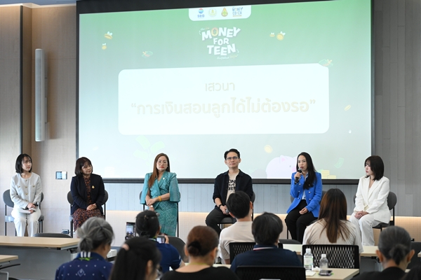 ภายในงานเปิดตัวหลักสูตร “Money for Teen เรื่องเงินเรียนรู้ได้ตั้งแต่วัยรุ่น” ยังมีการจัดเสวนาในหัวข้อ “การเงินสอนลูกได้ไม่ต้องรอ” เปิดเวทีแลกเปลี่ยนมุมมองจากผู้ทรงคุณวุฒิหลากหลายภาคส่วนถึงแนวทางการส่งเสริมความรู้ทางการเงินในครอบครัว และการขยายหลักสูตรเข้าสู่สถานศึกษาทั่วประเทศ โดยมีผู้ร่วมเสวนา ได้แก่ โค้ชหนุ่ม – คุณจักรพงษ์ เมษพันธุ์ The Money Coach คุณพุทธวรรณ สุภัทรนันท์ ผู้อำนวยการฝ่ายสื่อสารองค์กร Sea (ประเทศไทย) ดร.เกศทิพย์ ศุภวานิช อธิบดีกรมส่งเสริมการเรียนรู้ (สกร.) และคุณจรูญศรี แจบไธสง รองผู้อำนวยการสำนักวิชาการและมาตรฐานการศึกษา สํานักงานการศึกษาขั้นพื้นฐาน (สพฐ.) พร้อมแขกรับเชิญพิเศษอย่าง คุณเบลล์ – ยุภาพร ฤทธิญาณ อินฟลูเอนเซอร์ชื่อดัง (คุณแม่น้องชูใจ) ที่มาร่วมแบ่งปันประสบการณ์การสอนลูกเรื่องการเงินในชีวิตจริง