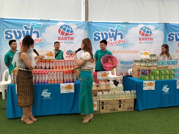 เอิร์ธ ร่วมงาน มหกรรมธงฟ้า ที่ จ.ศรีสะเกษ นำสินค้าพร้อมโปรโมชันสุดคุ้มร่วมงานกว่า 14 รายการ สนับสนุนช่วยลดภาระค่าครองชีพให้กับประชาชน ที่ได้รับผลกระทบจากปัญหาชายแดนไทย-กัมพูชา