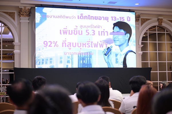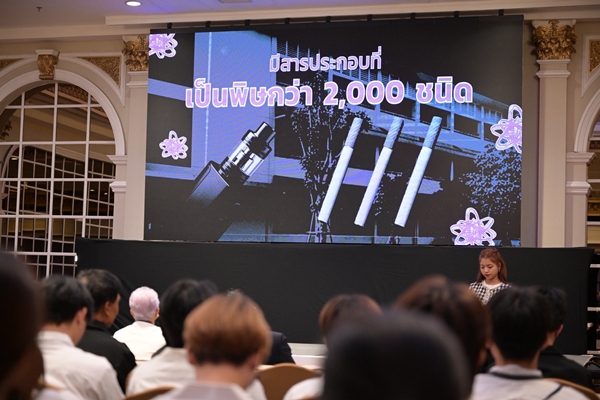 นางสาวรุ่งอรุณ ลิ้มฬหะภัณ ผู้อำนวยการสำนักสนับสนุนการควบคุมปัจจัยเสี่ยงหลัก สสส. กล่าวว่า ไทยเผชิญปัญหาการแพร่ระบาดของบุหรี่ไฟฟ้า โดยเฉพาะกลุ่มเด็กและเยาวชนที่เป็นกลุ่มเป้าหมายหลักของธุรกิจบุหรี่ไฟฟ้า ข้อมูลจากสำนักงานสถิติแห่งชาติล่าสุด ปี 2567 พบคนไทยสูบบุหรี่ไฟฟ้าสูงขึ้น 11.44 เท่า จากปี 2564 ที่มีผู้สูบบุหรี่ไฟฟ้า 78,742 คน เพิ่มเป็น 900,459 คน ในปี 2567 เป็นกลุ่มเด็กและเยาวชนอายุ 15-24 ปี มากถึง 251,625 คน ซึ่งขณะนี้มีบุหรี่ไฟฟ้ารูปแบบใหม่ พร้อมใช้กลยุทธ์การตลาดผ่านสื่อออนไลน์ เข้าถึงและจูงใจให้เยาวชนอยากลองใช้ 1.ทอยพอด บุหรี่ไฟฟ้ารูปลักษณ์คล้ายของเล่น หรือตุ๊กตา 2.พอดจมูก สูบผ่านจมูกคล้ายยาดม 3.นิโคตินพาวช์ (Nicotine Pouch) หรือถุงซองนิโคติน ใช้เหน็บไว้ระหว่างเหงือกกับริมฝีปาก 4.พอดเค บุหรี่ไฟฟ้าแปลงร่างเป็นยาเสพติด ที่เปลี่ยนหัวพอดเป็นน้ำยาผสมเคตามีน หรือยาสลบ สูบแล้วเคลิ้มฝัน เมา มีผลกระทบต่อสุขภาพรุนแรง เช่น ประสาทหลอน นำไปสู่โรคจิตเภท ทำให้กล้ามเนื้อขาดออกซิเจน อาจหมดสติ และเสียชีวิตได้ นอกจากนี้ สารนิโคตินในบุหรี่ไฟฟ้ามีอันตราย ส่งผลต่อพัฒนาการสมอง เพิ่มความเสี่ยงโรคปอดอักเสบรุนแรง และภาวะซึมเศร้า