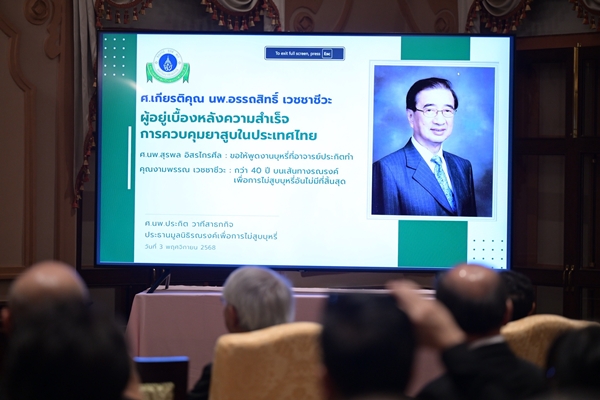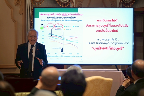 ราชบัณฑิตยสภาสดุดีคุณูปการ “ศ.นพ.อรรถสิทธิ์ เวชชาชีวะ” ผู้วางรากฐานสังคมไทยปลอดบุหรี่ ด้าน “หมอประกิต” จี้รัฐบาลปราบปรามบุหรี่ไฟฟ้าอย่างจริงจัง หลังพบสถิติเยาวชนเสพติดบุหรี่ไฟฟ้าพุ่งกระฉูด วอนรัฐบาลให้ความสำคัญบังคับใช้กฎหมายควบคุมยาสูบอย่างเด็ดขาด