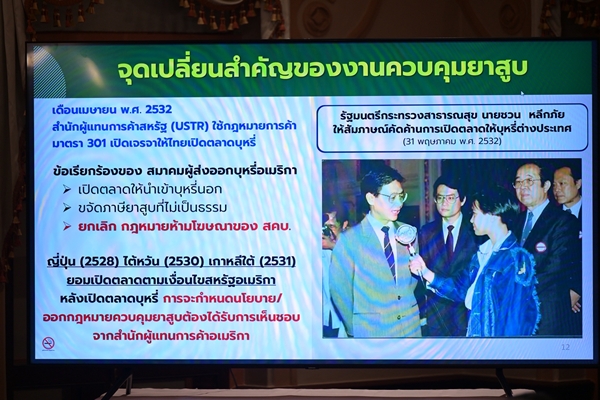 ศ.นพ.ประกิต วาทีสาธกกิจ ประธานมูลนิธิรณรงค์เพื่อการไม่สูบบุหรี่ กล่าวปาฐกถาหัวข้อ “ศาสตราจารย์เกียรติคุณ นายแพทย์อรรถสิทธิ์ เวชชาชีวะ ผู้อยู่เบื้องหลังความสำเร็จในการควบคุมยาสูบในประเทศไทย” ว่า การจัดงานครั้งนี้เพื่อรำลึกถึงคุณูปการของศาสตราจารย์เกียรติคุณ นายแพทย์อรรถสิทธิ์ เวชชาชีวะ อดีตนายกราชบัณฑิตยสถาน ผู้มีบทบาทสำคัญในการริเริ่มและผลักดันการรณรงค์ลดการสูบบุหรี่ในประเทศไทยให้ประสบผลสำเร็จเป็นที่ยอมรับในระดับนานาชาติ ตลอดจนเป็นการเผยแพร่คุณงามความดีของท่านให้สาธารณชนได้ตระหนักถึงจิตวิญญาณแห่งความเสียสละเพื่อส่วนรวม