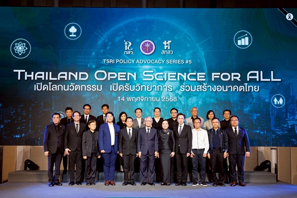 กระทรวงการอุดมศึกษา วิทยาศาสตร์ วิจัยและนวัตกรรม โดยสำนักงานคณะกรรมการส่งเสริมวิทยาศาสตร์ วิจัยและนวัตกรรม (สกสว.) ภายใต้กองทุนส่งเสริมวิทยาศาสตร์ วิจัยและนวัตกรรม (ววน.) จัดการประชุม TSRI Policy Advocacy Series ครั้งที่ 5 “Thailand Open Science for ALL” เพื่อผลักดันนโยบายสำคัญการพัฒนาประเทศด้วยระบบ ววน. ผ่านการประกาศเจตนารมณ์ของ สกสว. ในการขับเคลื่อน “Thailand Open Science” ให้เป็นกรอบยุทธศาสตร์ระดับชาติที่เชื่อมโยงทุกภาคส่วนของระบบ ววน. เข้าด้วยกัน เพื่อสร้างประโยชน์สุขแก่ประชาชนและยกระดับขีดความสามารถในการแข่งขันของประเทศ