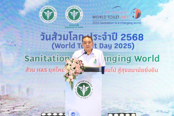 นายแพทย์นเรศฤทธิ์ ขัดธะสีมา รองอธิบดีกรมอนามัย กล่าวเพิ่มเติมว่า วันที่ 19 พฤศจิกายนของทุกปี สหประชาชาติกำหนดให้เป็น “วันส้วมโลก” กรมอนามัย เห็นความสำคัญของการพัฒนาส้วมและระบบสุขาภิบาล เพื่อสุขอนามัยที่ดีของทุกคน จึงกำหนดให้มีการณรงค์วันวันส้วมโลก ประจำปี 2568 ภายใต้หัวข้อ “Sanitation in a changing world : ส้วม HAS ยุคใหม่ ก้าวทันโลกที่เปลี่ยนไป สู่สุขอนามัยยั่งยืน เพื่อกระตุ้นเตือนให้ทุกภาคส่วนเห็นความสำคัญของการจัดการส้วมและสุขาภิบาล ภายใต้สถานการณ์ของโลก ไม่ว่าจะเป็นความต้องการที่เพิ่มมากขึ้น รวมถึงการมีส้วมที่รองรับการเปลี่ยนแปลงสภาพภูมิอากาศ เช่น น้ำท่วม ภัยพิบัติ ที่กระทบต่อส้วมและระบบสุขาภิบาล และที่สำคัญ ต้องมีการจัดการสิ่งปฏิกูลจากส้วมอย่างถูกต้องด้วย โดยกล่าวทิ้งท้ายว่า “ไม่ว่าโลกจะเปลี่ยนไปอย่างไร เรายังต้องมีส้วมที่สะอาด ปลอดภัย เข้าถึงได้ สำหรับทุกคน เพื่อสุขอนามัยที่ดีอย่างยั่งยืน”