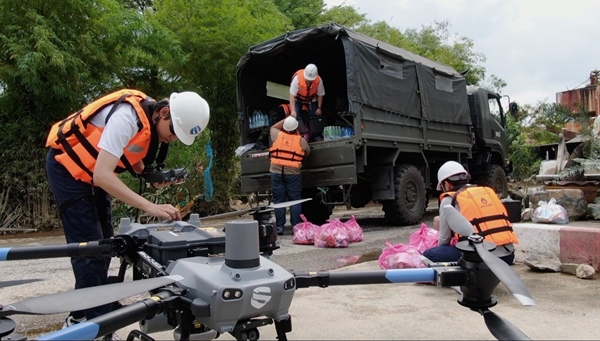 โดยศักยภาพของโดรนเพื่อการขนส่งที่ สไกลเลอร์ โซลูชั่นส์ ที่มีระบบนำร่องที่แม่นยำ นำมาใช้ในภารกิจช่วยเหลือผู้ประสบภัย ทำให้สามารถหย่อนถุงยังชีพ เวชภัณฑ์ยาและน้ำดื่ม ลงส่งของได้อย่างแม่นยำแม้อยู่ในพื้นที่จำกัดท่ามกลางสภาพอากาศที่ฝนตกและลมแรงเป็นช่วง ๆ ช่วยย่นระยะเวลาการเดินทางจากเดิมที่ต้องใช้เรือฝ่ากระแสน้ำเชี่ยว ซึ่งมีความอันตรายและความยากลำบากในการเข้าถึงทำให้ลดความเสี่ยงกับทีมกู้ภัยภาคพื้นดิน